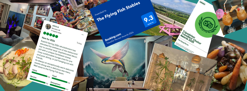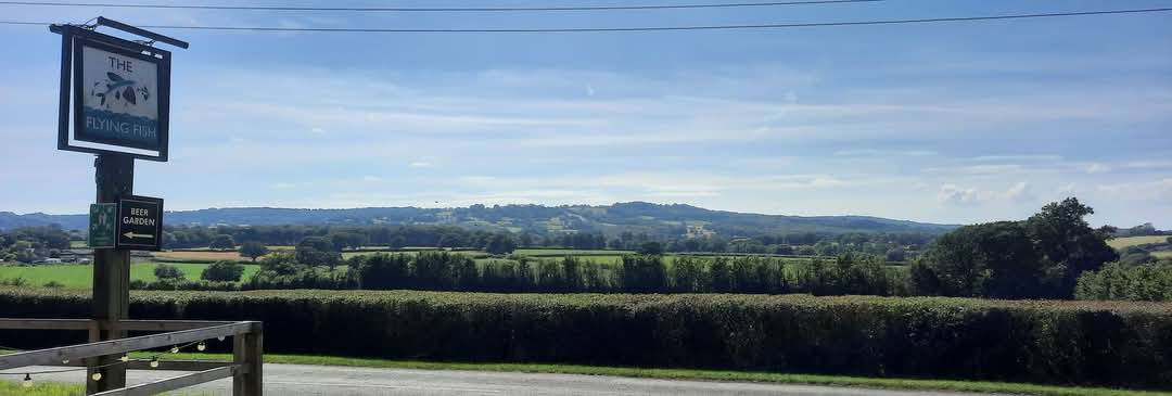 The Flying Fish, formerly known as The Square & Compass, is a country pub and restaurant with separate accommodation and a Wedding and events barn, located at Windmill Hill, near Ilminster. Surrounded by fields with beautiful views of the Blackdown Hills, yet just 5 mins from the A303 and 10 mins from the M5, it’s a convenient place to meet, drink, eat and sleep!